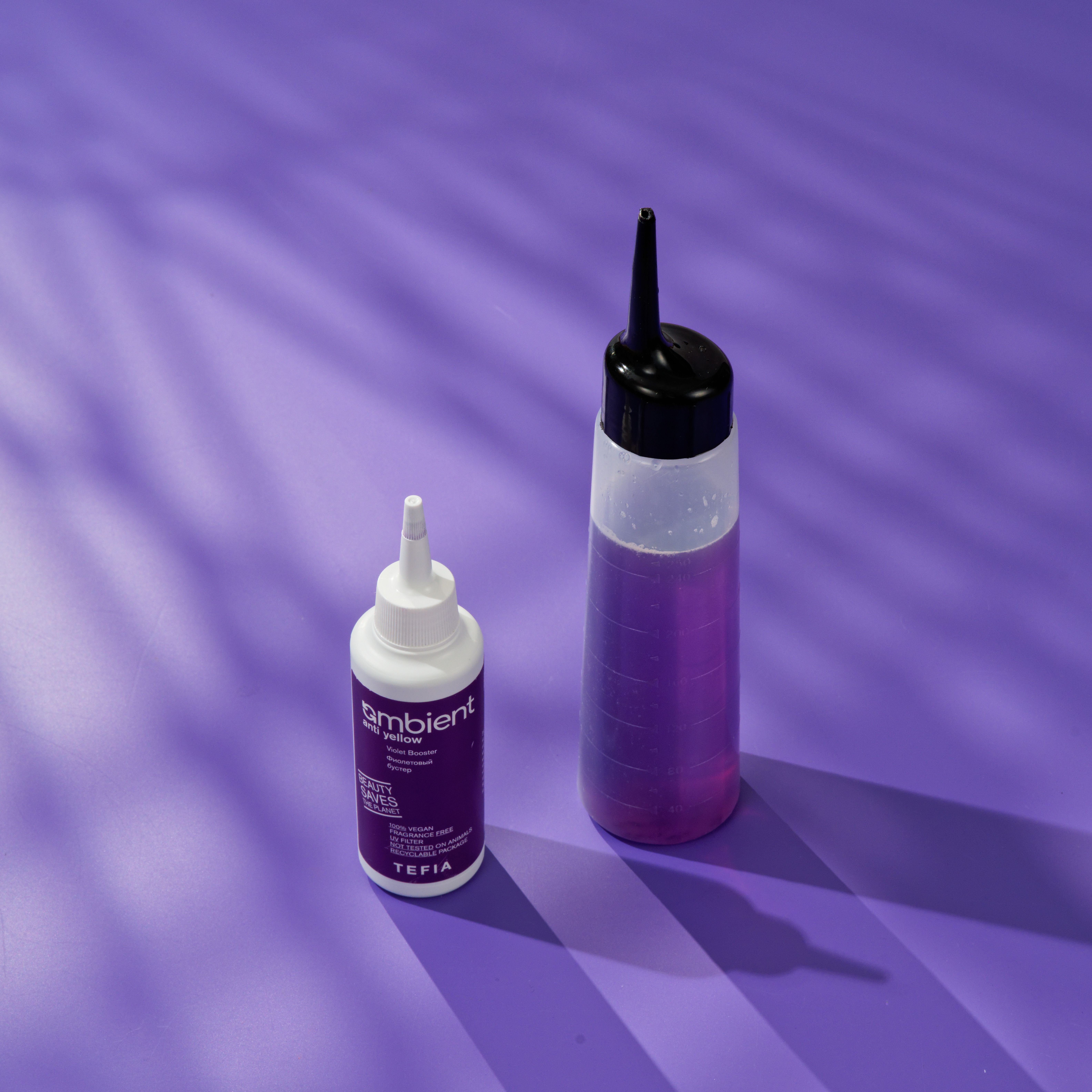 Тщательно встряхнуть флакон. Добавить 5 г бустера на 30 г шампуня или маски Tefia Ambient Anti Yellow, тщательно перемешать, использовать привычным способом. Для более интенсивного воздействия увеличить концентрацию бустера. Рекомендуем использовать перчатки.